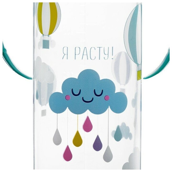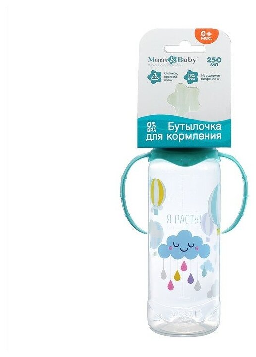 Mum&Baby Бутылочка для кормления «Нежное облачно» детская классическая, с ручками, 250 мл, от 0 мес., цвет бирюзовый