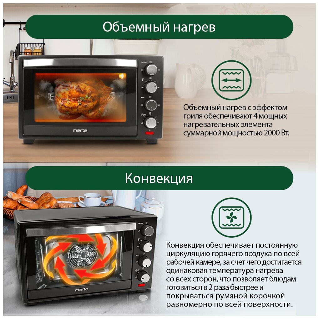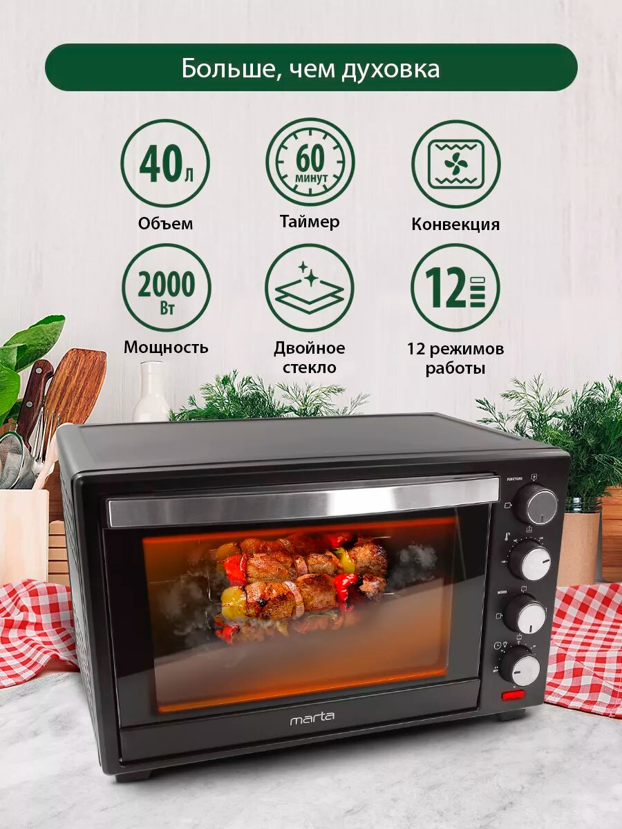 Духовка электрическая настольная, конвекция, гриль 40 л интересное:
