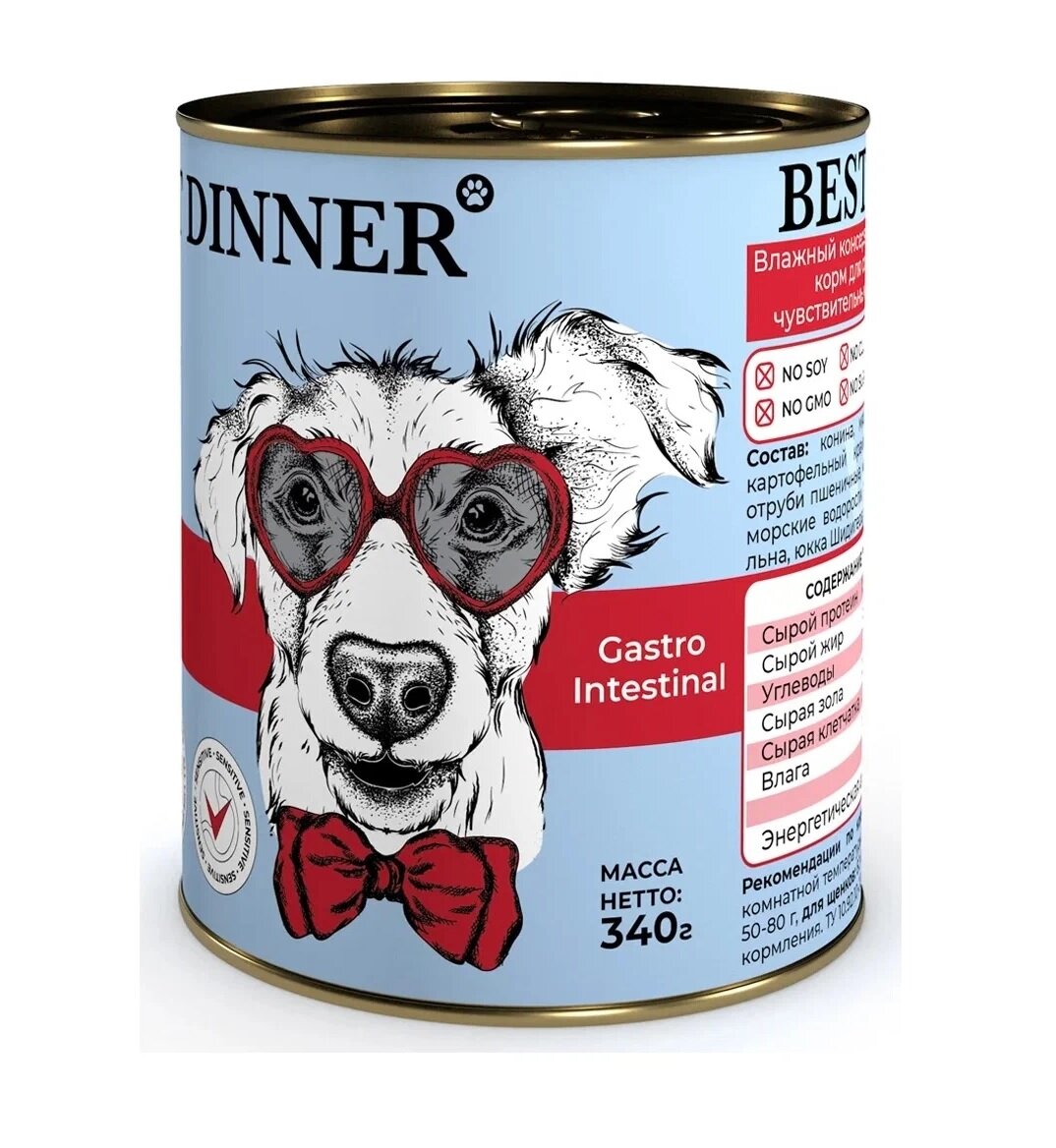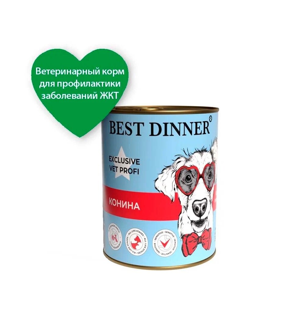 Best Dinner Exclusive Gastro Intestinal консервы для собак при проблемах пищеварения с кониной - 0,34 кг х 12шт