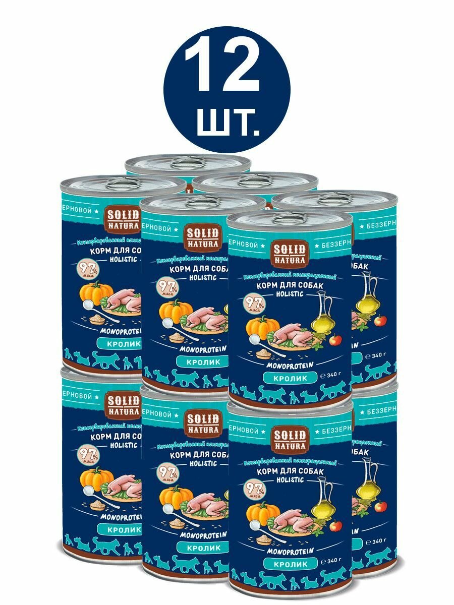 Влажный корм для собак Solid Natura Holistic кролик, упаковка 12 шт х 340 г
