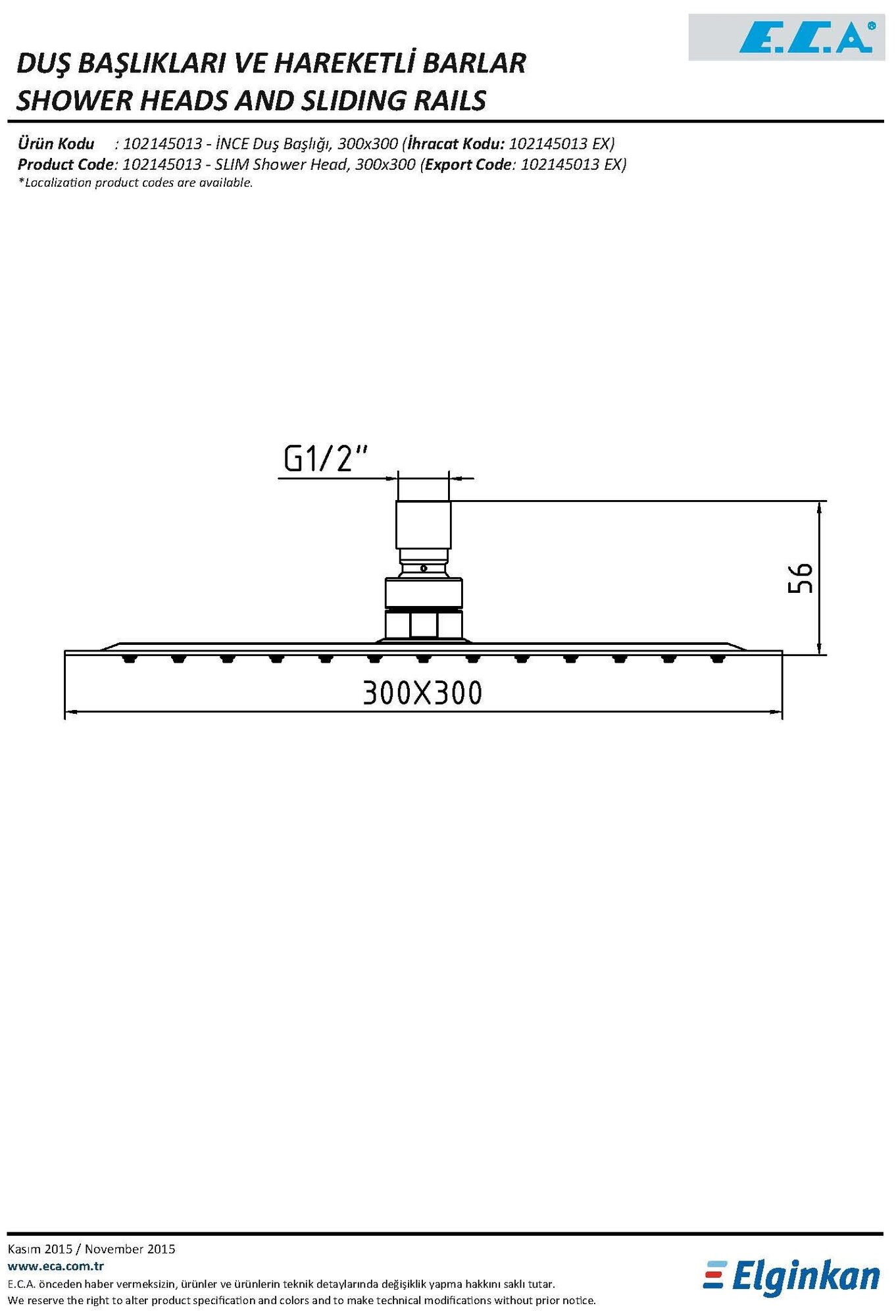 Верхний душ 300 мм E.C.A Shower Heads 102145013EX