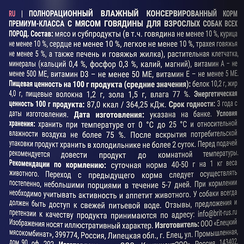 BRIT PREMIUM BY NATURE DOG для взрослых собак всех пород с говядиной банка 410 гр 410 гр х 6 шт