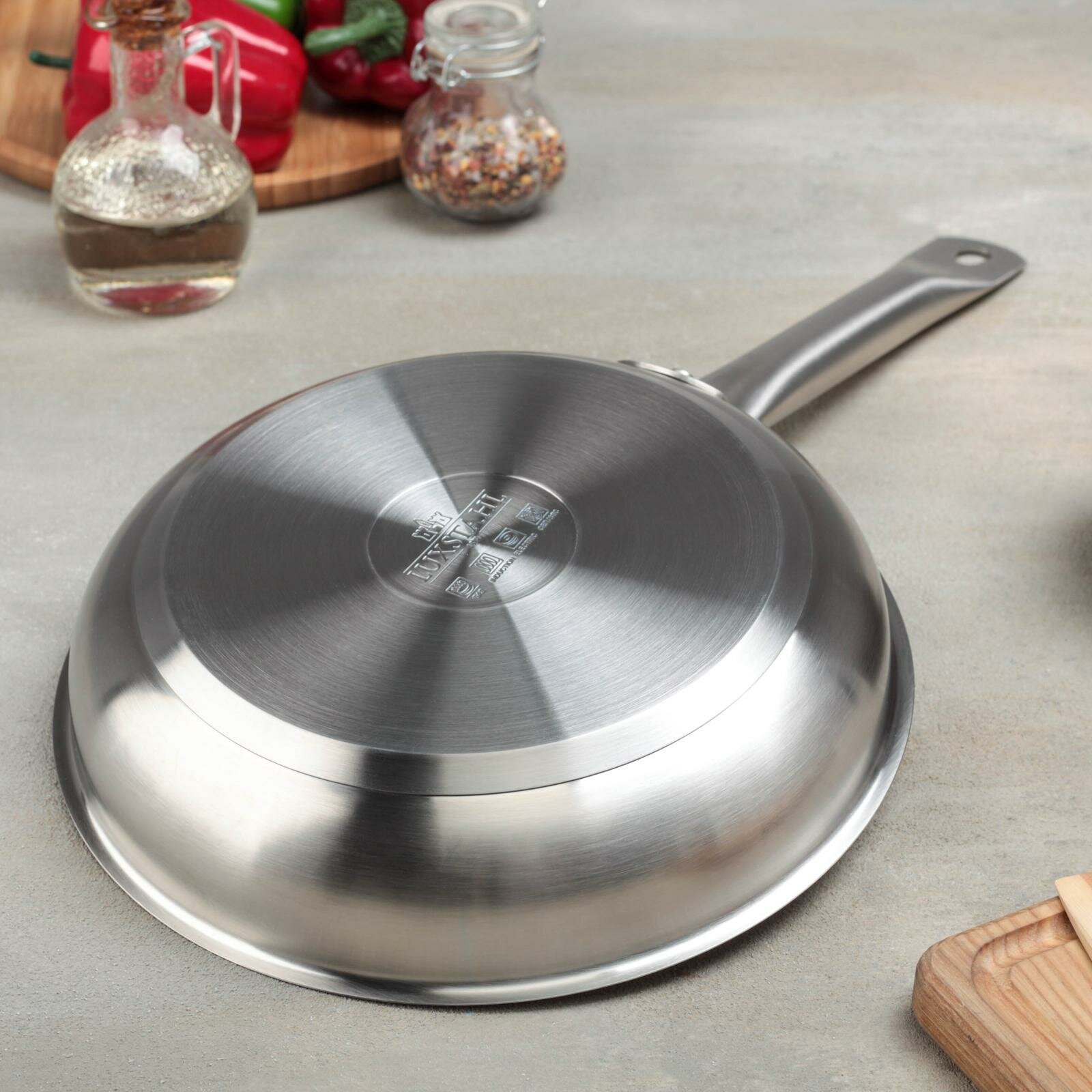 Сковорода из нержавеющей стали LUXSTAHL, d 24 см, h 5 см, тройное дно, антипригарное покрытие, индукция