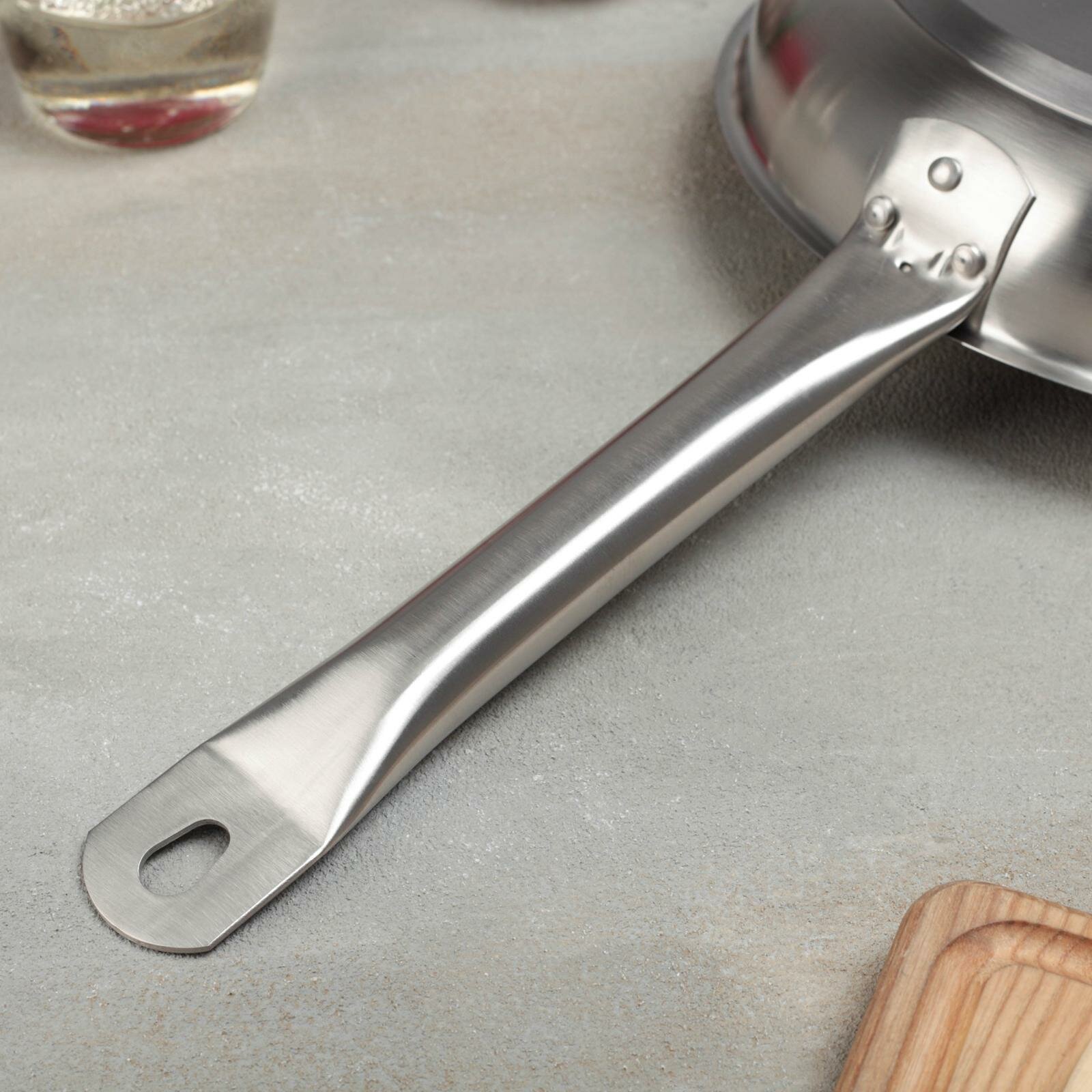 Сковорода, d 28 см, h 4 см, тройное дно, индукция, нержавеющая сталь, антипригарное покрытие