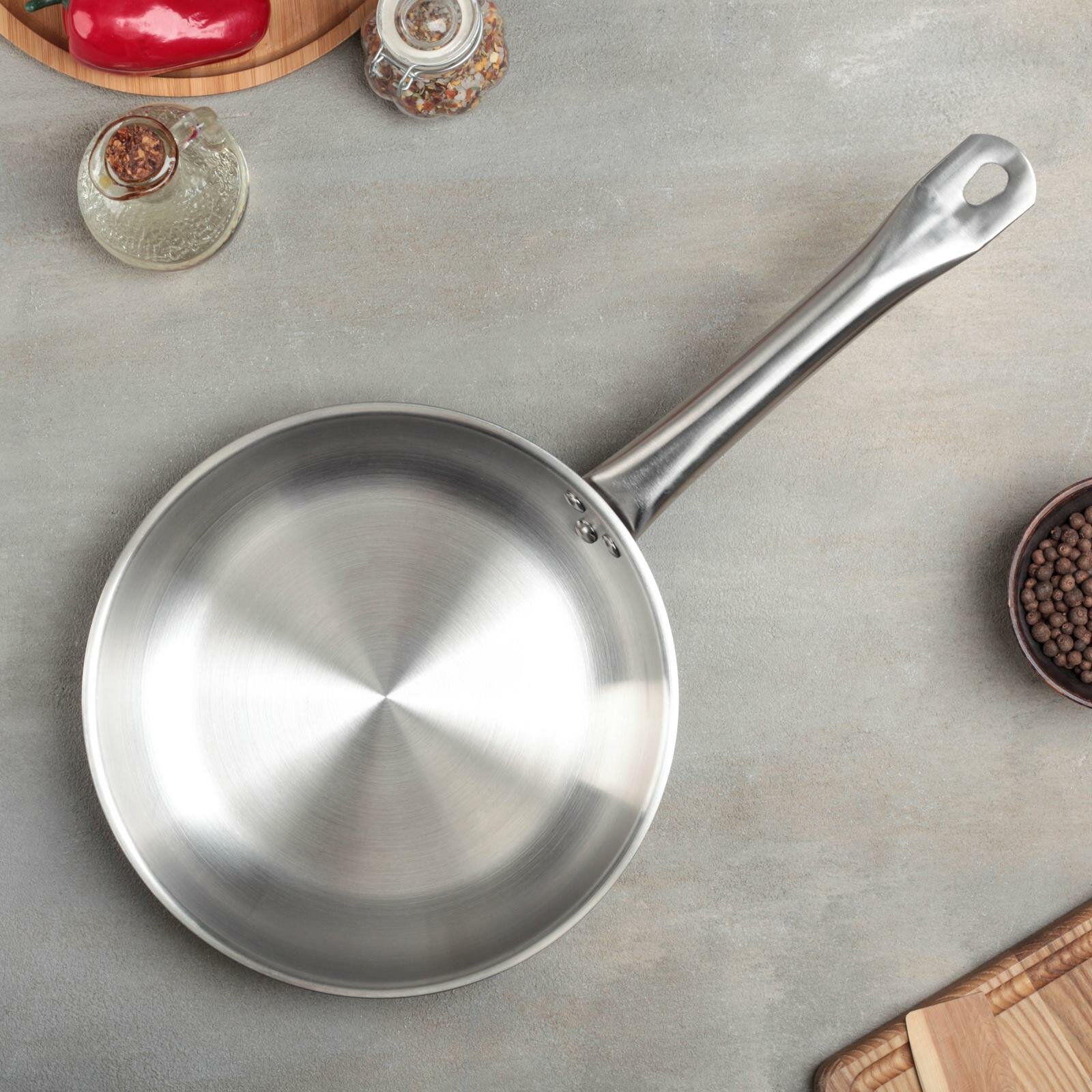 Сковорода из нержавеющей стали, d=22 см, h=5 см, капсульное дно, индукция