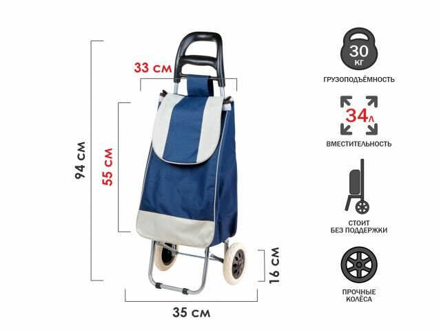 Купить Сумка-тележка хозяйственная на колесах 30 кг, синяя, полоска, PERFECTO LINEA