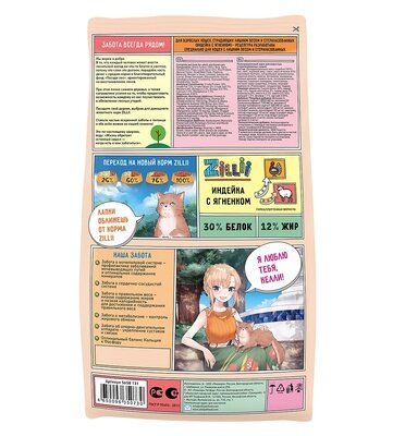Сухой корм ZILLII (Зилли) Light/Sterilized Cat для стерилизованных кошек Индейка, Ягненок 2кг