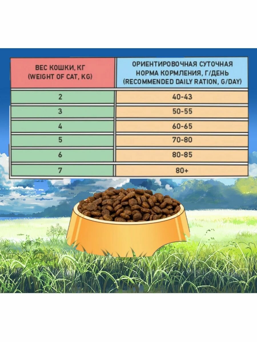 | Особые потребности | для живущих в помещении / для живущих на улице / для здоровья кожи и блеска шерсти / для стерилизованных/кастрированных / профилактика зубного камня / профилактика избыточного веса |