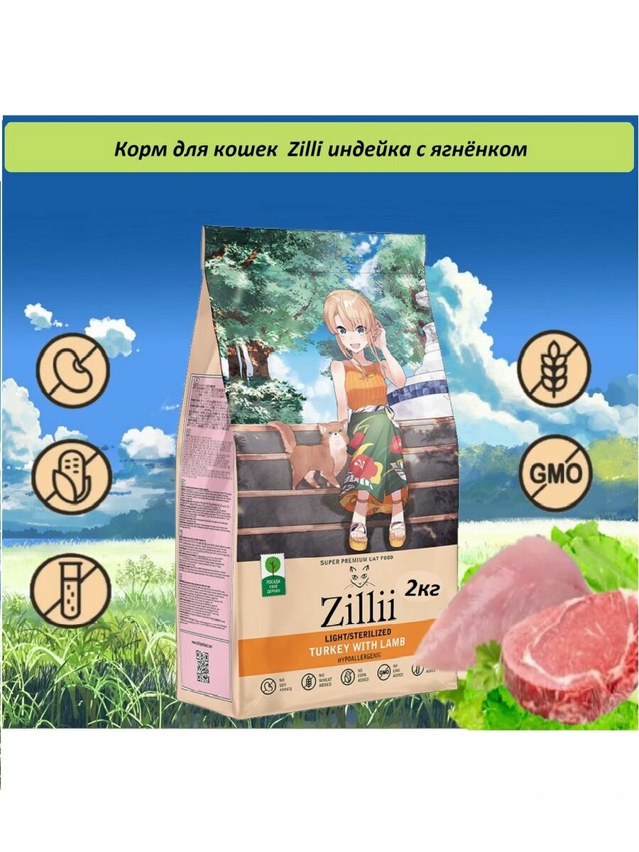 Купить ZILLII Light/Sterilized Cat Сухой корм для кошек с избыточным весом и стерилизованных Индейка/Ягнёнок 2кг