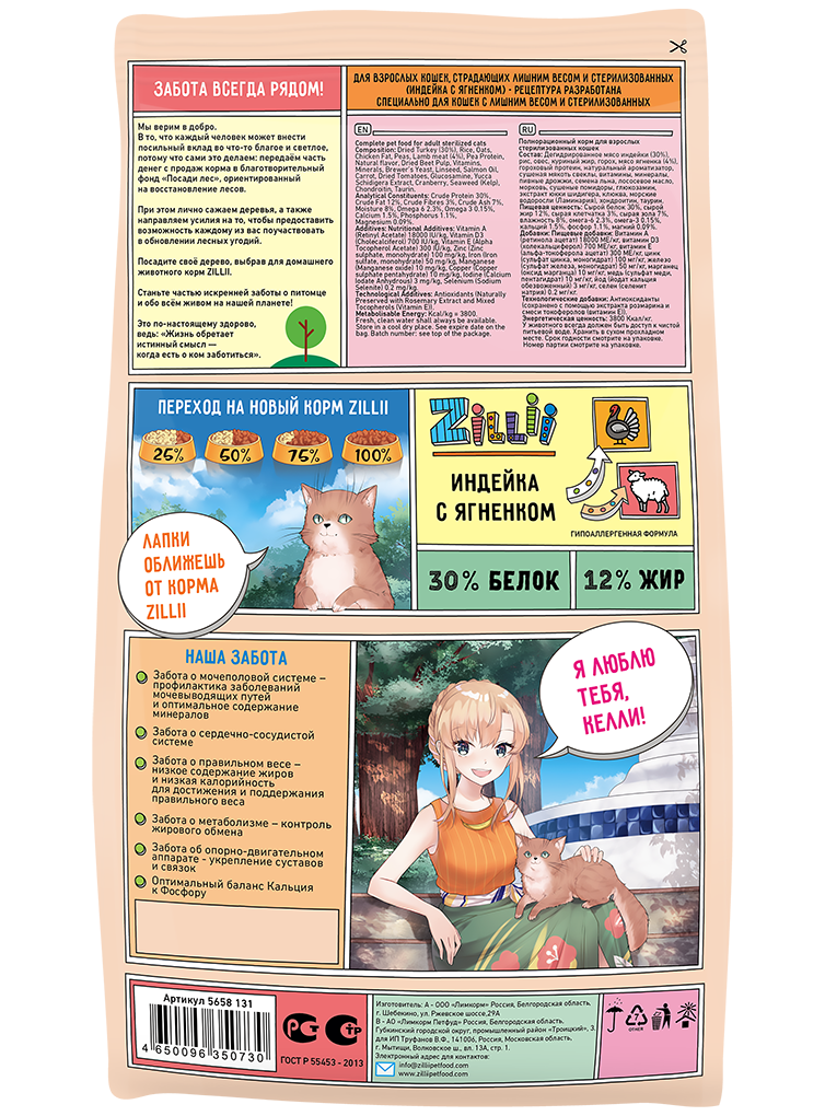 ZILLII 5658130/350877 Light/Sterilized Cat Сухой корм д/взрослых кошек с избыточным весом и стерилиз