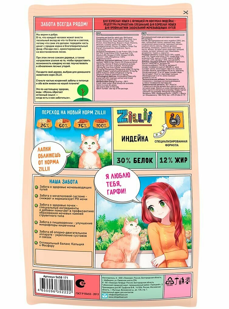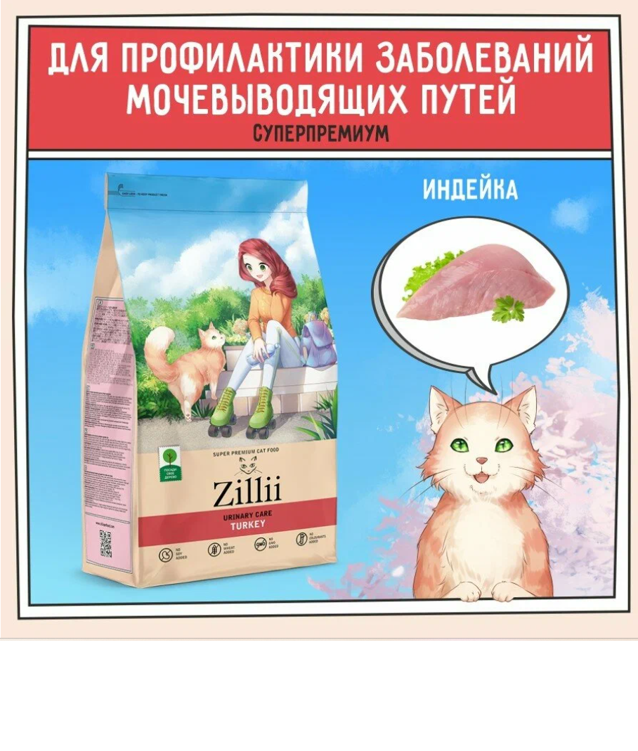 ZILLII Urinary Cat Сухой корм для кошек, PH контроль, Индейка 10кг
