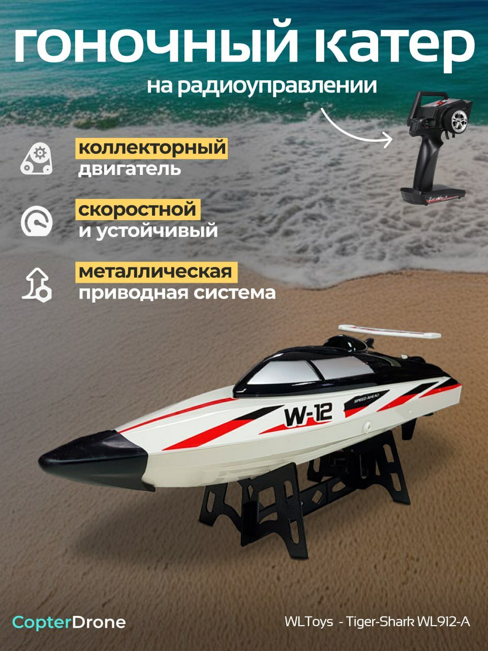 Радиоуправляемый гоночный катер WLToys Tiger-Shark - WL912-A / катер на пульте управления для детей интересное: