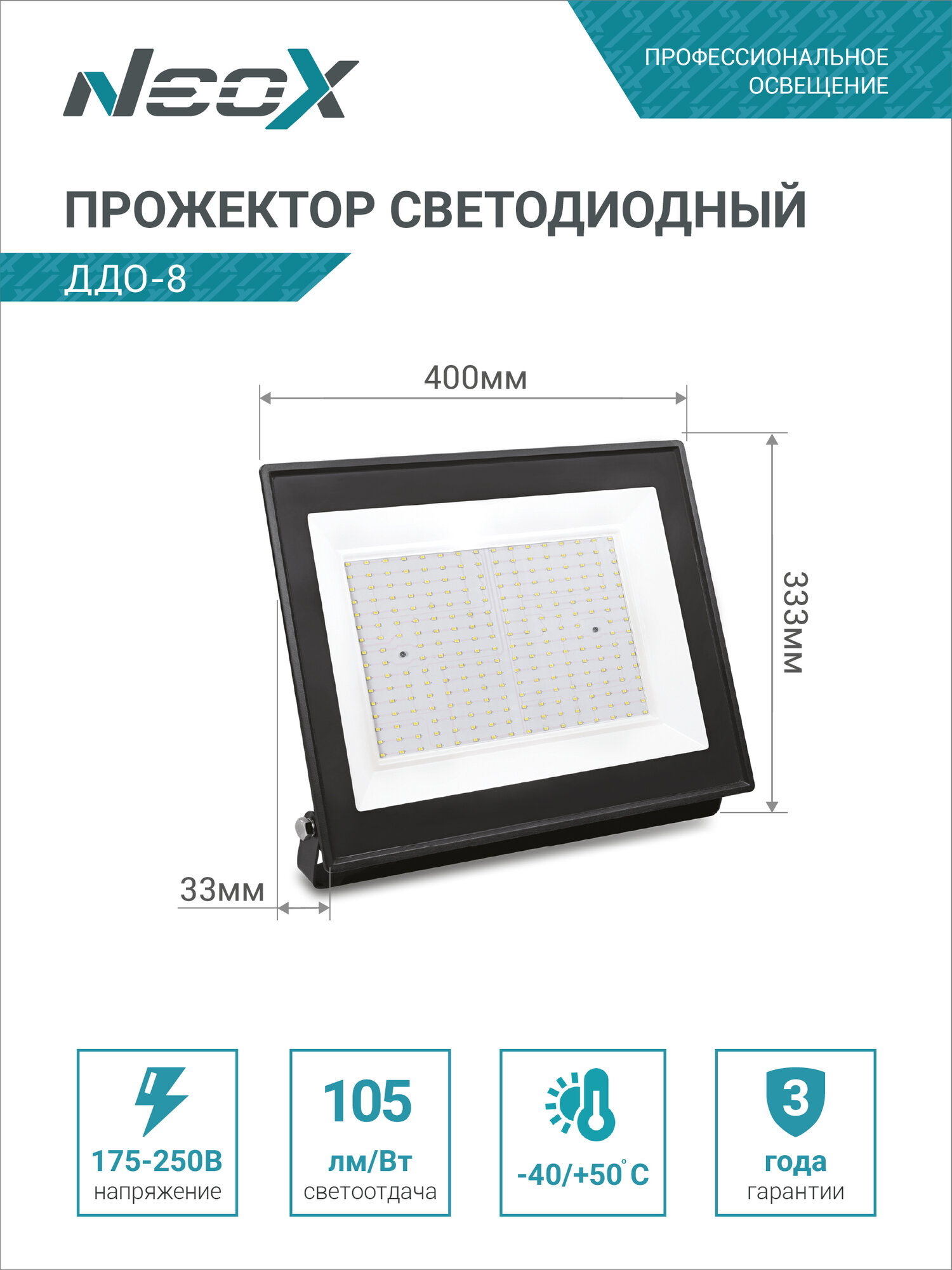 Прожектор Neox ДДО-8 200Вт 230В 6500К 21000лм 105лм/Вт IP65 4690612037110 интересное: