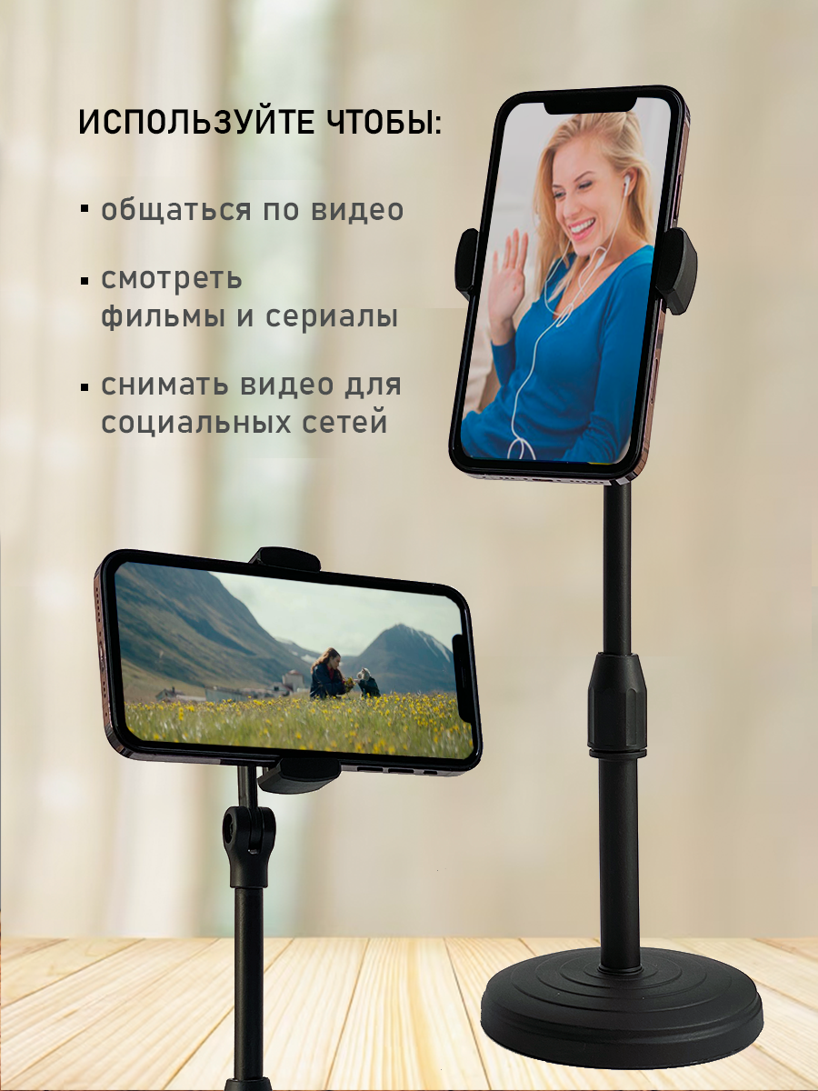 Штатив для телефона настольный / универсальная настольная стойка с держателем для смартфонов и микрофонов /регулируемый по высоте/ поворотный 360 интересное: