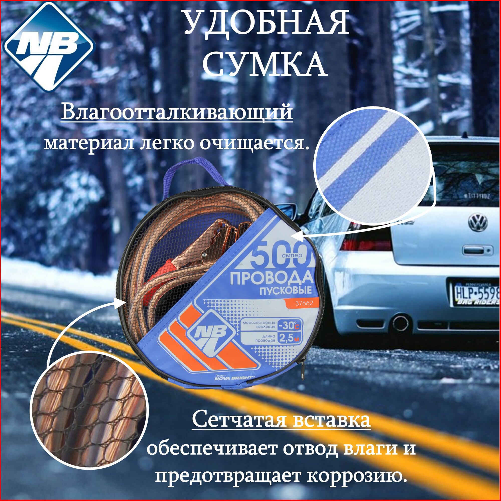 Пусковые провода Nova Bright, 500 А, с прозрачной изоляцией, морозостойкие, в сумке, 2.5 м Nova Brig