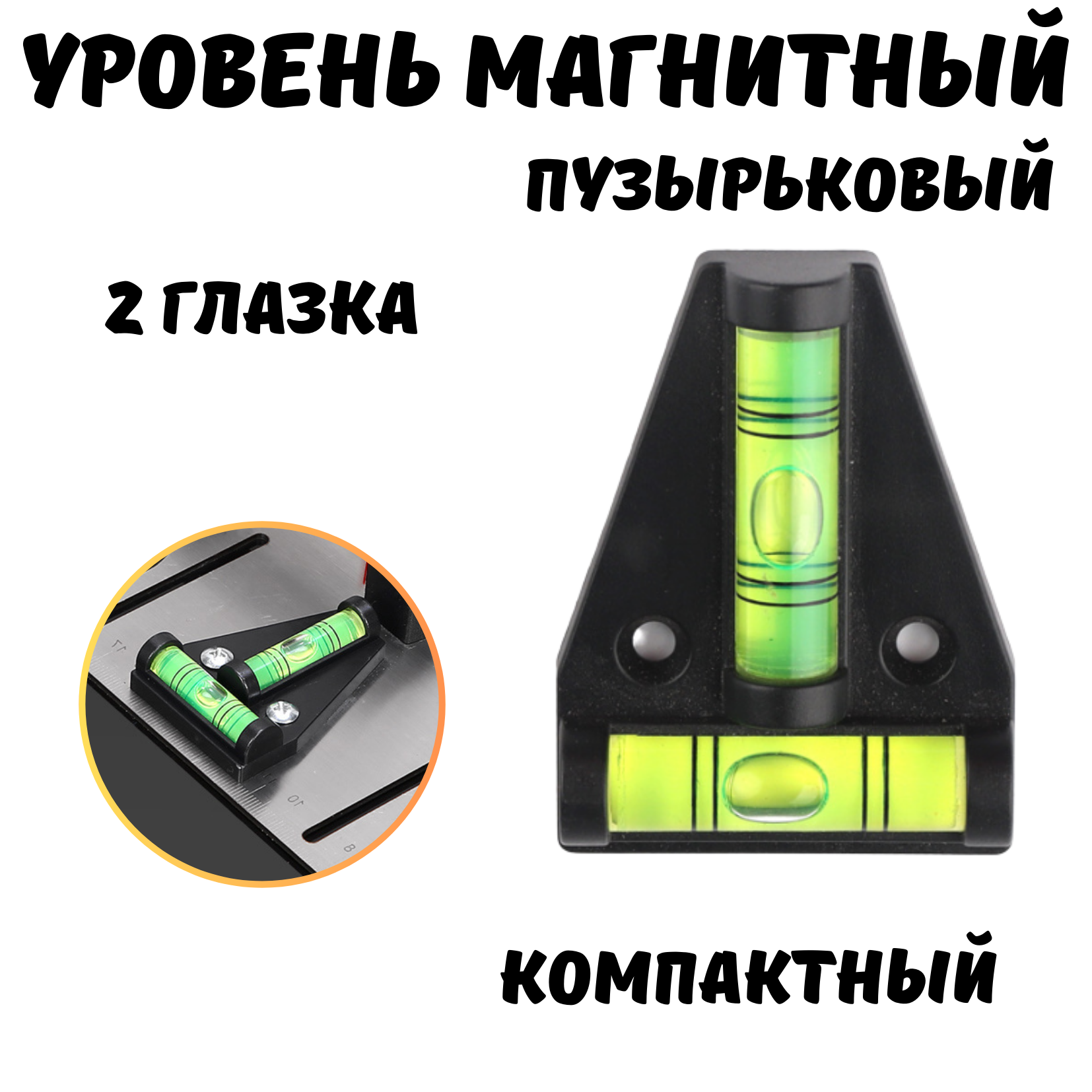 Мини-уровень строительный магнитный, компактный , 2 глазка, цвет черный интересное: