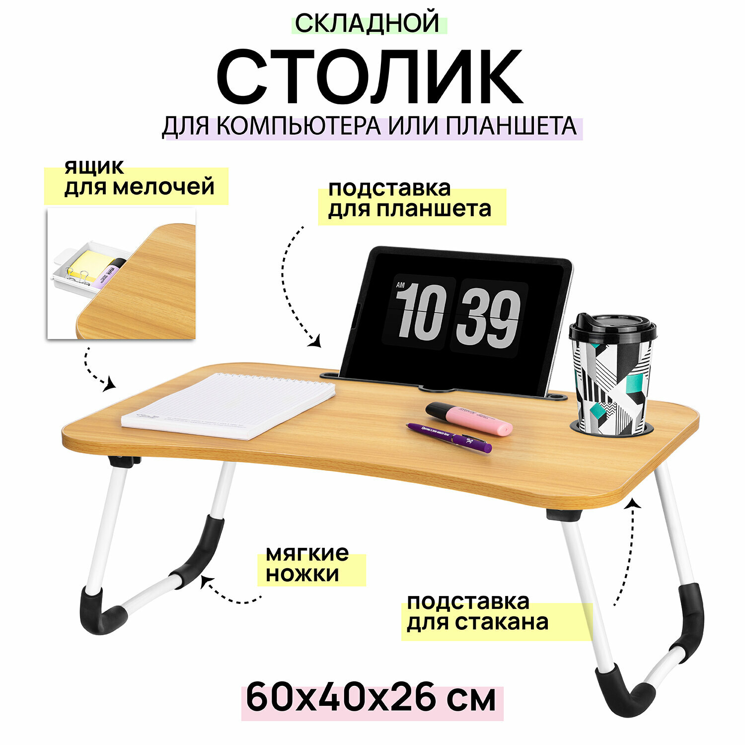 Складной столик для компьютера, ноутбука 60х40х26 см EL Casa Орех интересное: