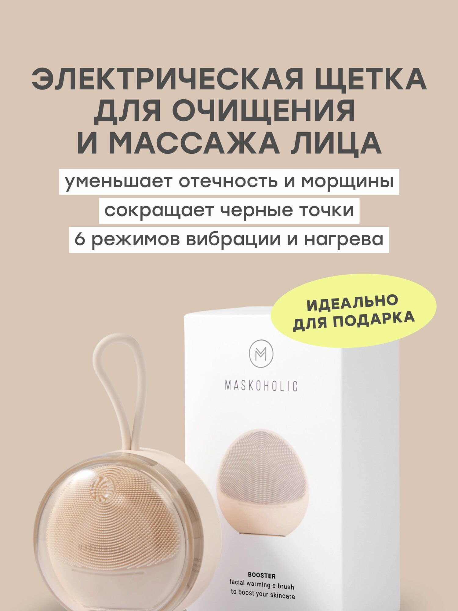 MASKOHOLIC / Электрическая щетка для очищения и умывания лица. Массажер для лица с функцией нагрева - 6 режимов для разных типов кожи. интересное: