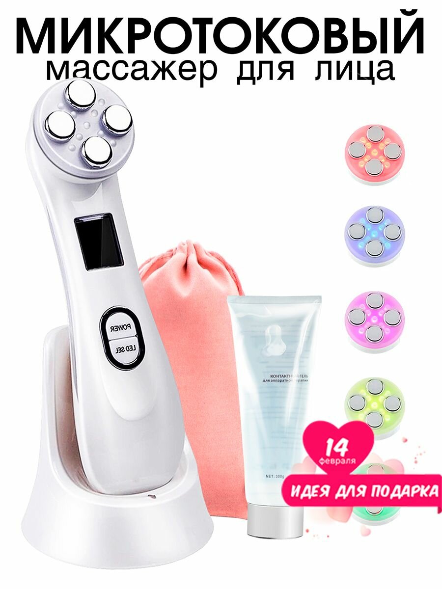 Микротоковый массажер для лица и шеи, Rf лифтинг для овала лица, косметологический аппарат от морщин, мезотерапия, омоложение, LED , гель в подарок