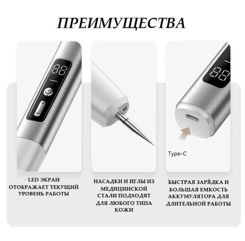 | Плюсы: | хорошо и достаточно безболезненно прижигает, много запасных игл, с видео легко разобраться, работает с нажатой кнопкой при соприкосновении с кожей |