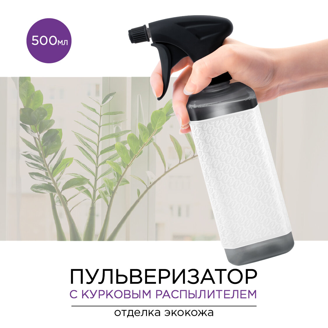 Купить Пульверизатор для воды, опрыскиватель, флакон с распылителем для воды, опрыскиватель для растений, EcoCaps, ЭкоКапс, флакон 500 мл, цвет Белый-638