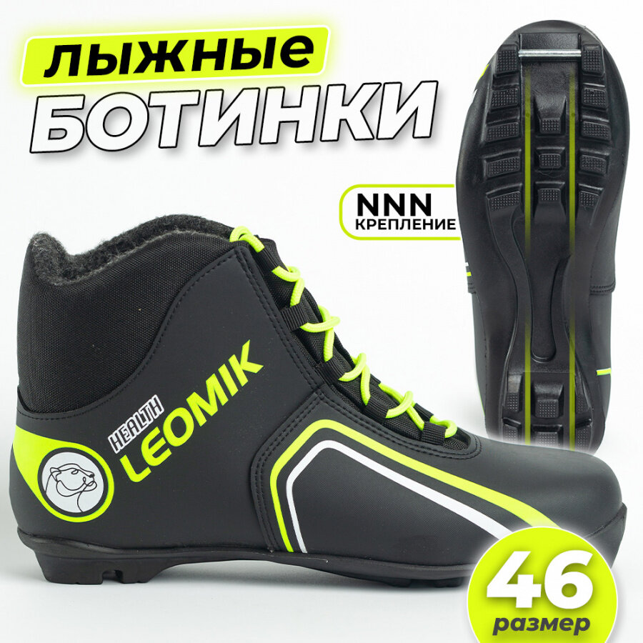 Ботинки лыжные Leomik Health (green) NNN, размер 46, черно-неоновые