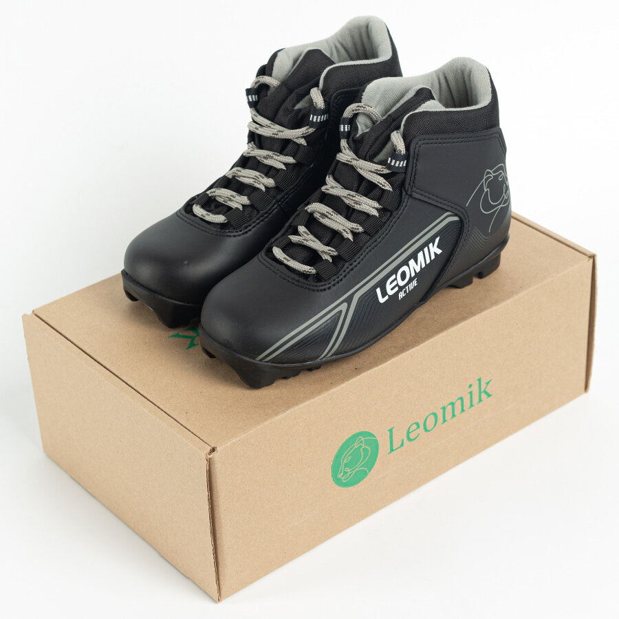 Ботинки лыжные Leomik Active (grey) NNN, размер 34, черно-серые