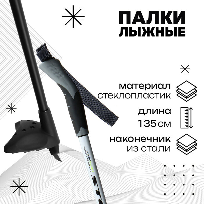 Палки лыжные стеклопластиковые, длина 135 см, цвета микс Бренд ЦСТ 190366 .