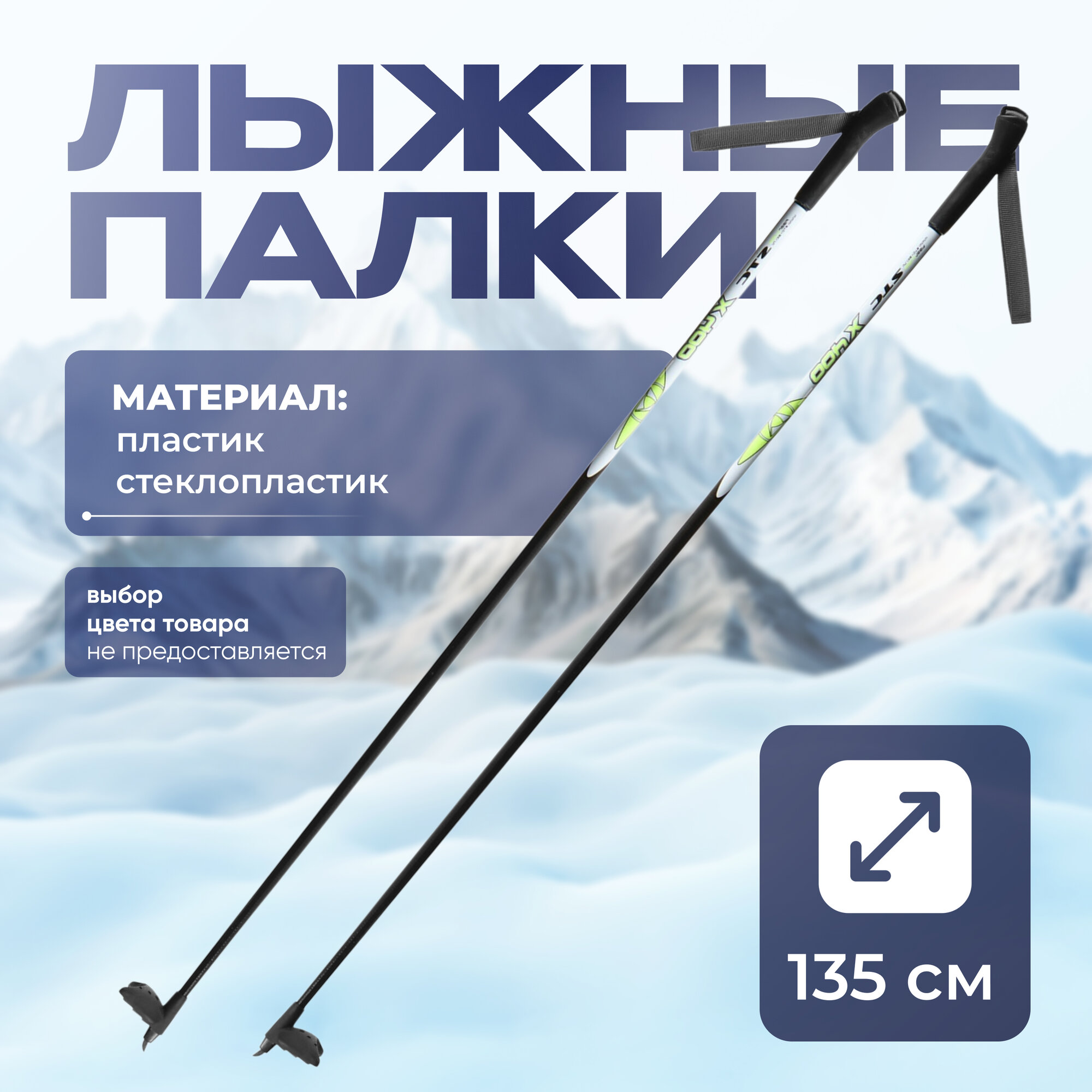 Палки лыжные стеклопластиковые, длина 135 см, цвета микс, "Бренд ЦСТ"