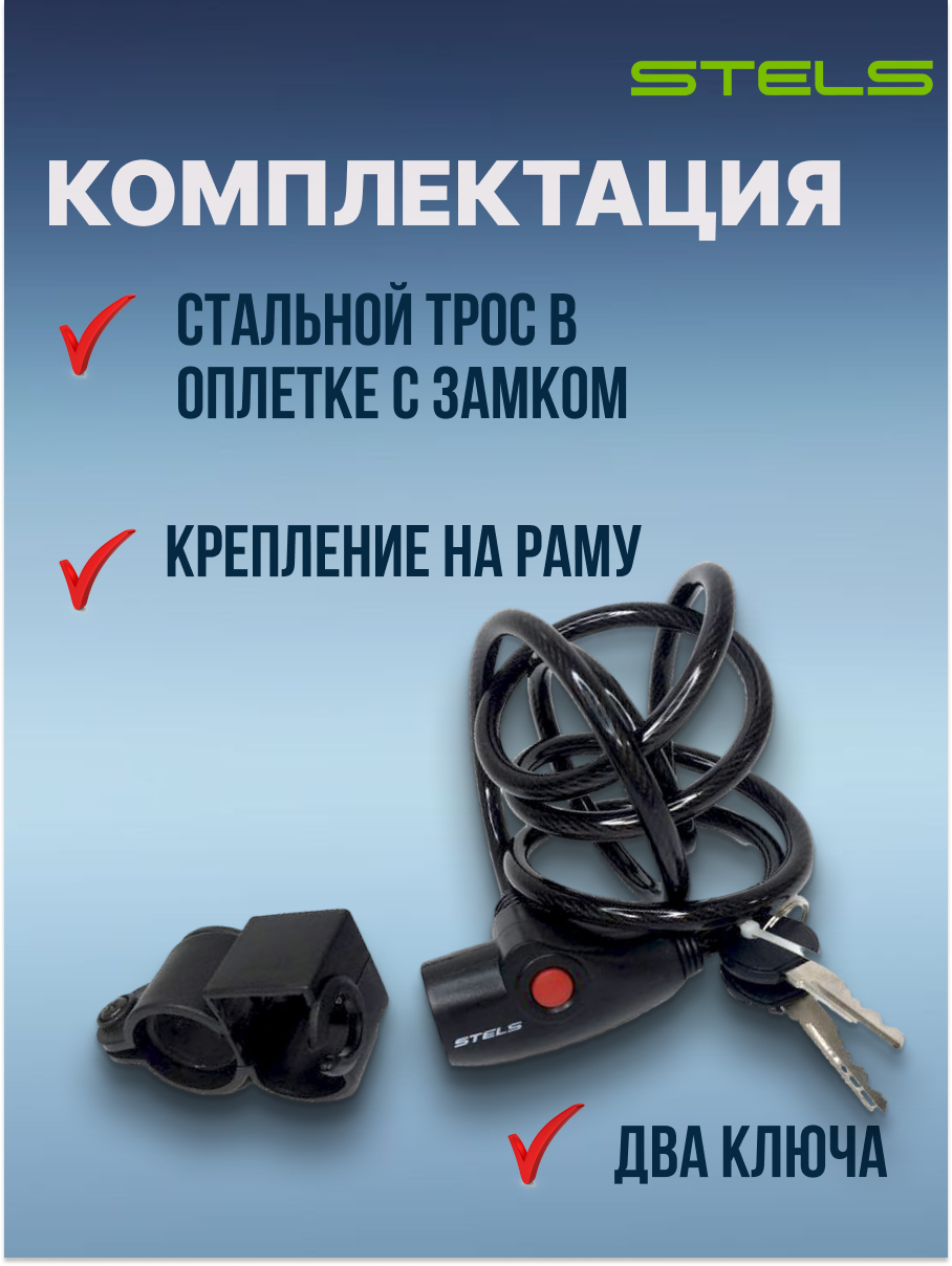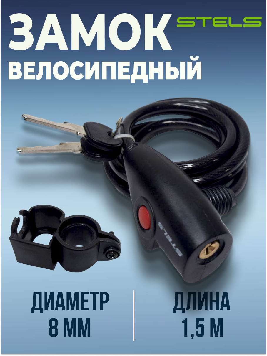 Купить Трос-замок STELS 8x1500мм 87109 с креплением на велосипед, черный NEW