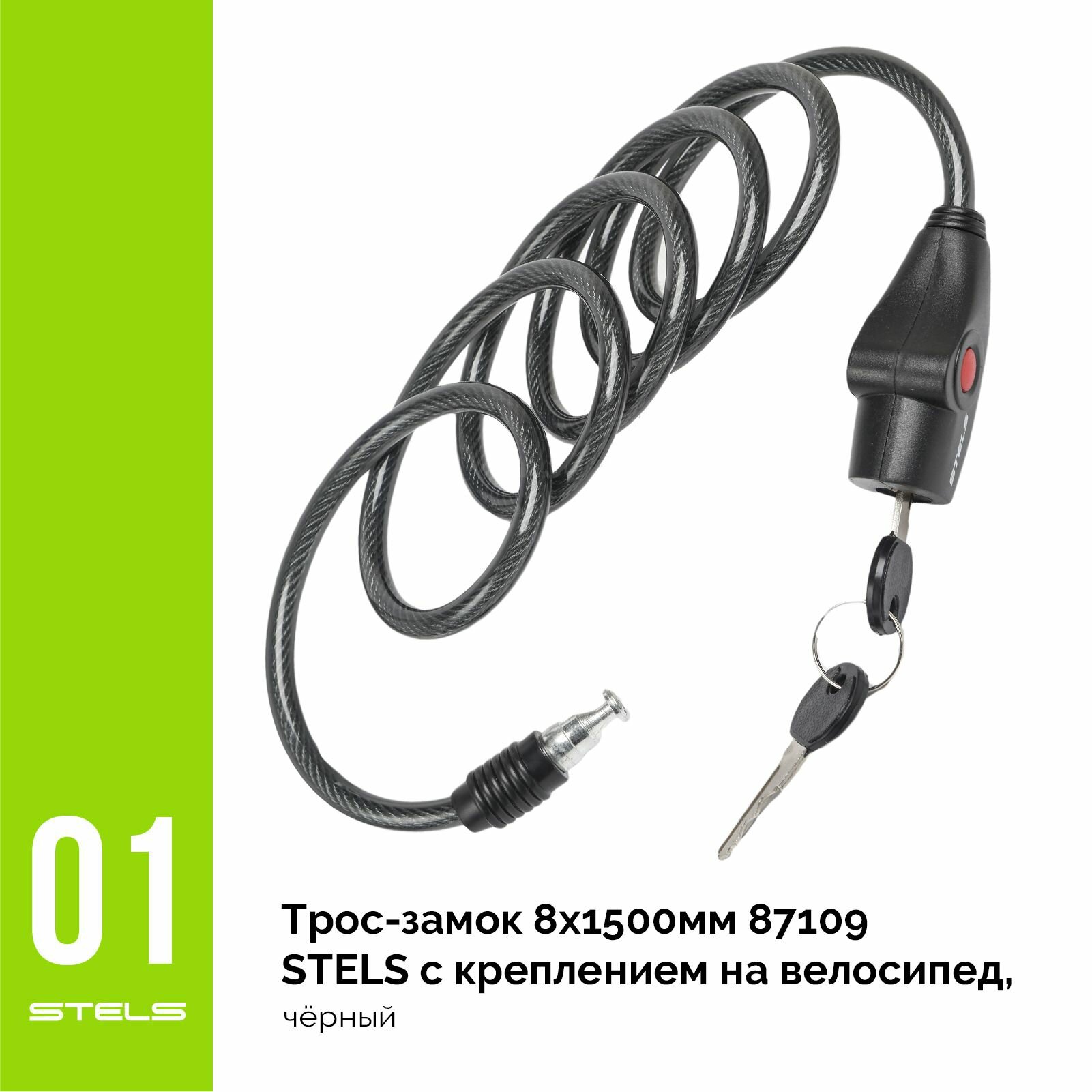 Замок велосипедный STELS 87109, 8x1500 мм, стальной, c креплением, на ключ, черный, арт. 540081