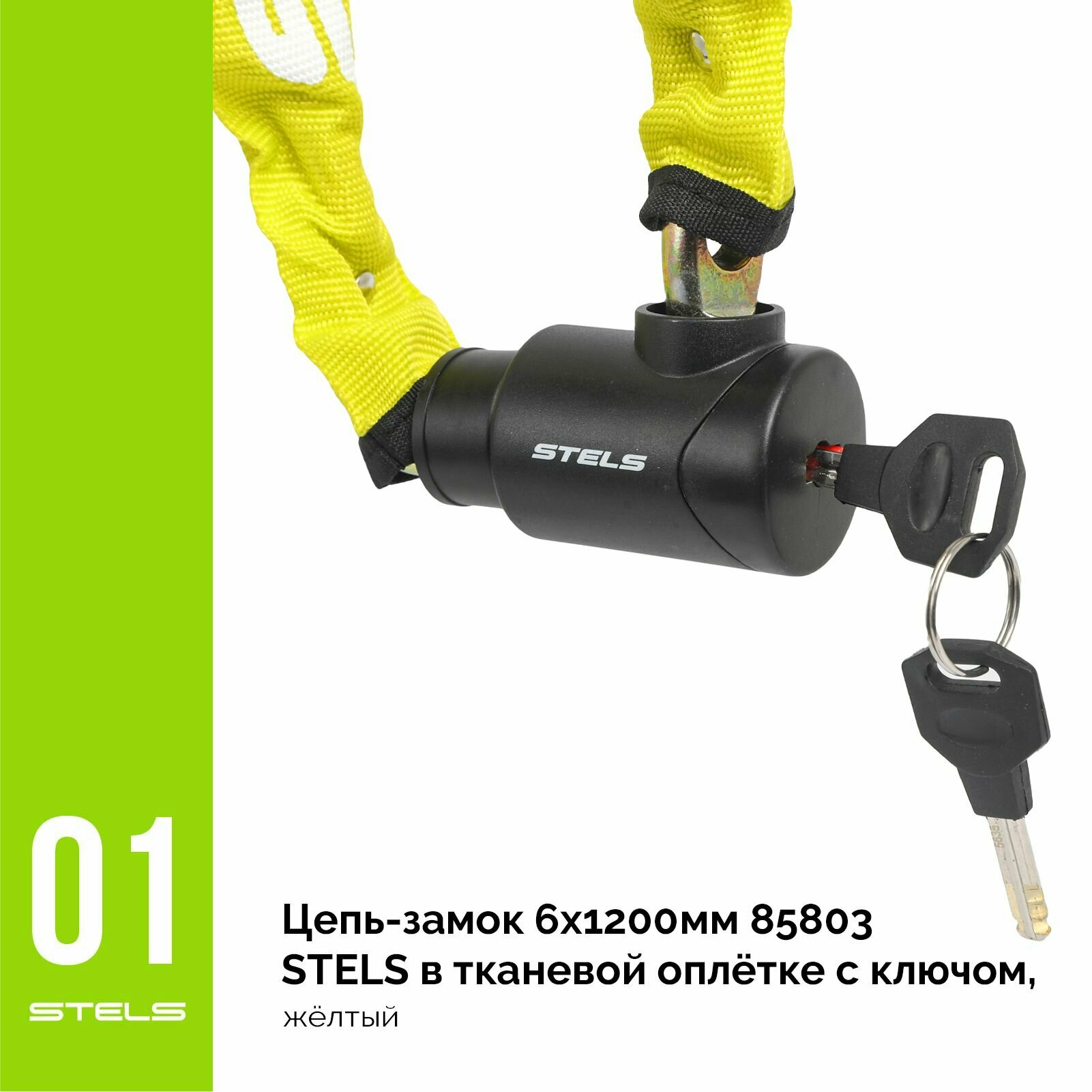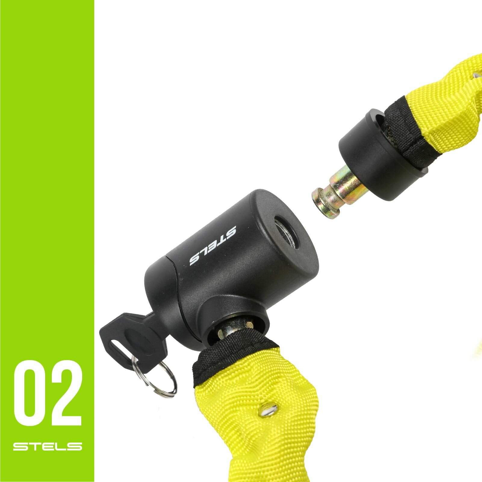 Купить Цепь-замок STELS 6х1200мм 85803 в тканевой оплётке с ключом, жёлтый NEW