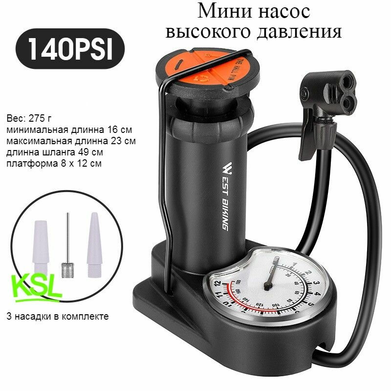 Насос для велосипедов ножной мини West Biking 140 psi, 3 насадки интересное: