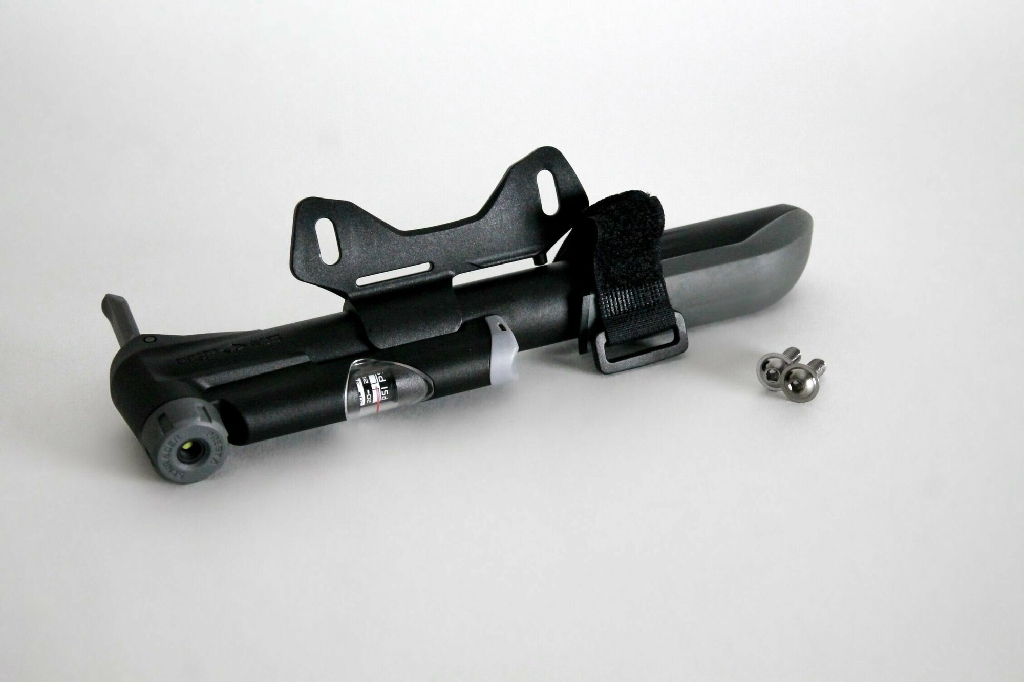 Насос велосипедный с манометром ручной. Давление до 8 атмосфер (120psi). Компактный с креплением на раму вело. Для всех видов ниппелей (AV SV FV))