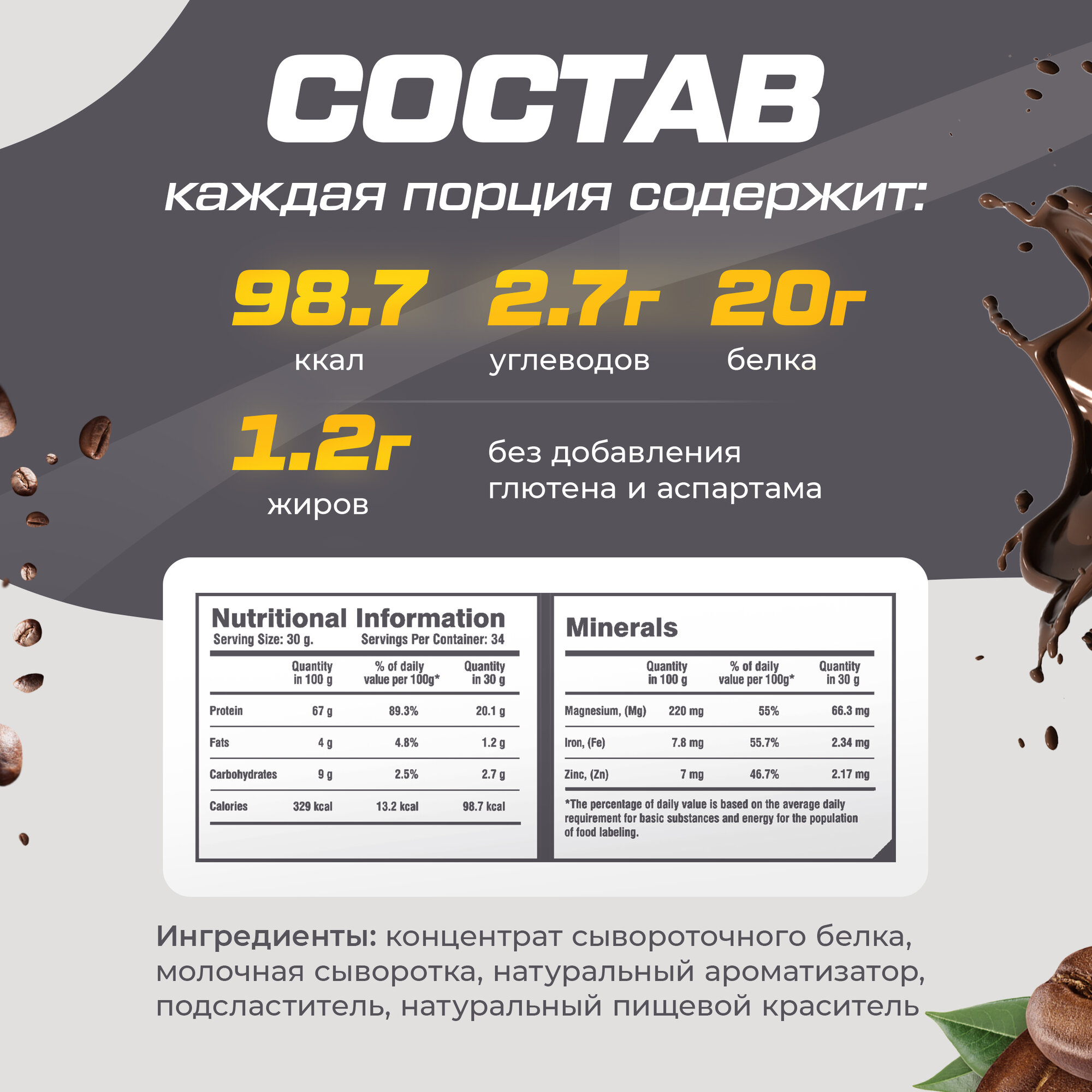 Протеин сывороточный со вкусом капучино, 1020 гр 34 порций