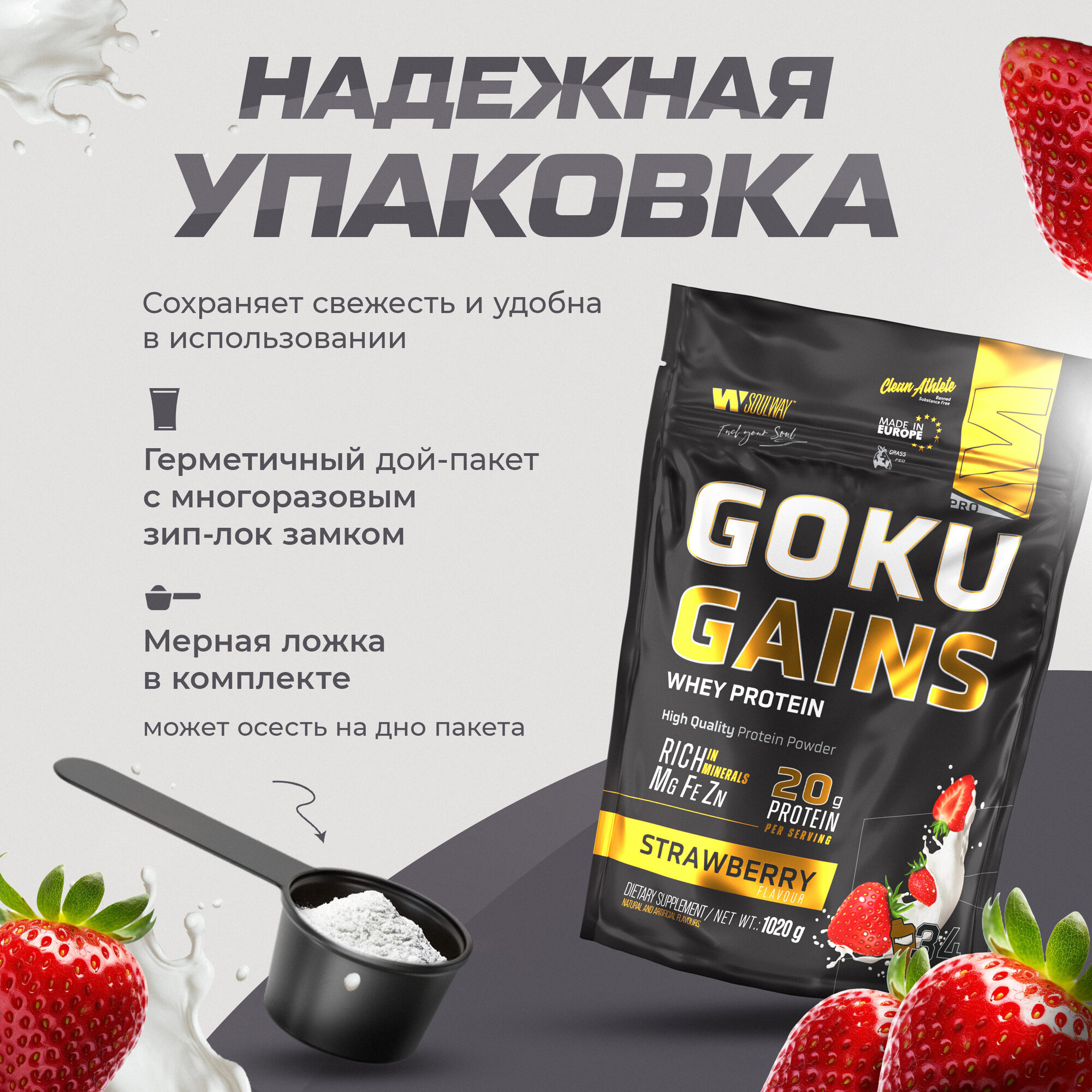 Купить Протеин сывороточный Soul Way, протеин клубничный / 1020 гр 34 порций