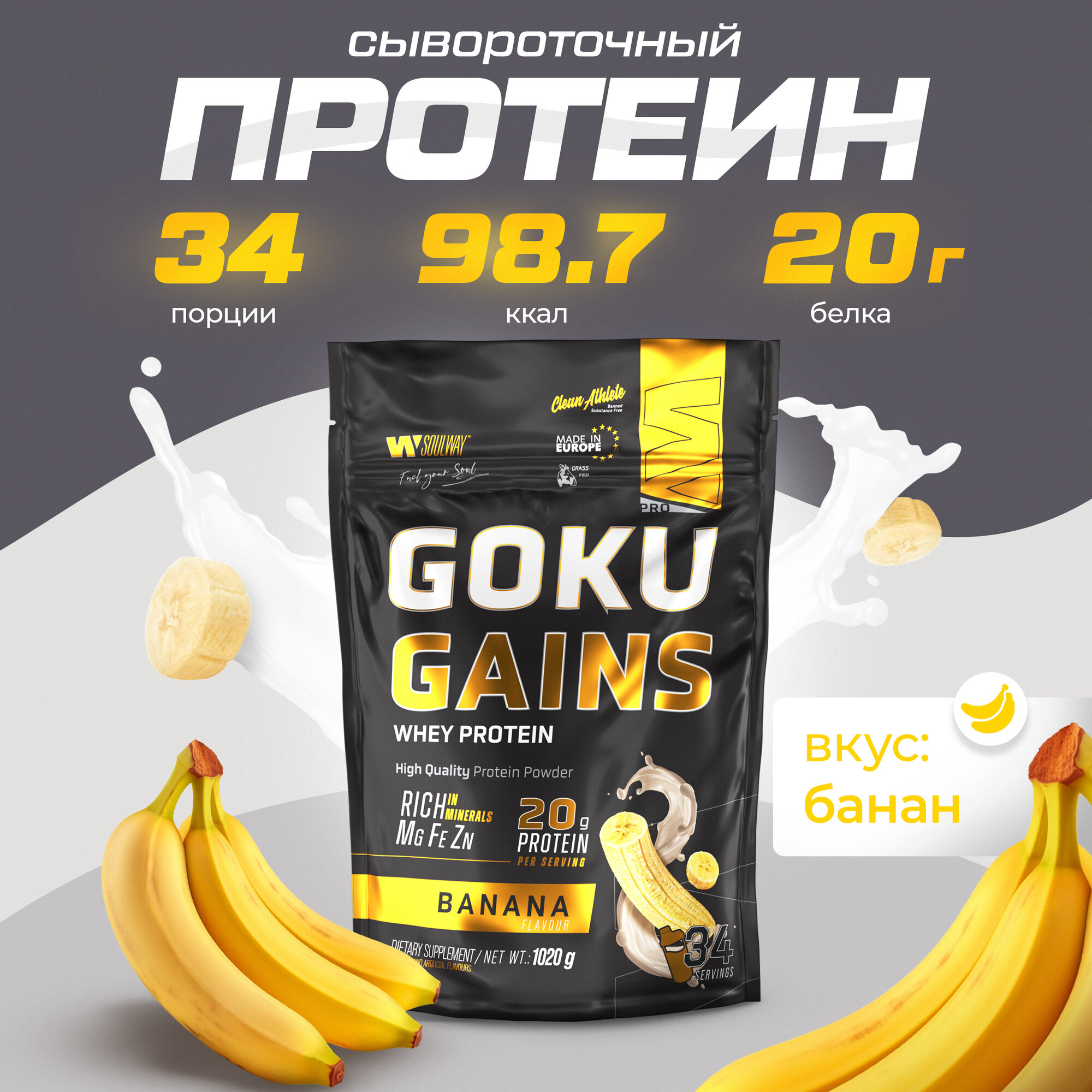Купить Протеин сывороточный Soul Way, протеин банановый / 1020 гр 34 порций