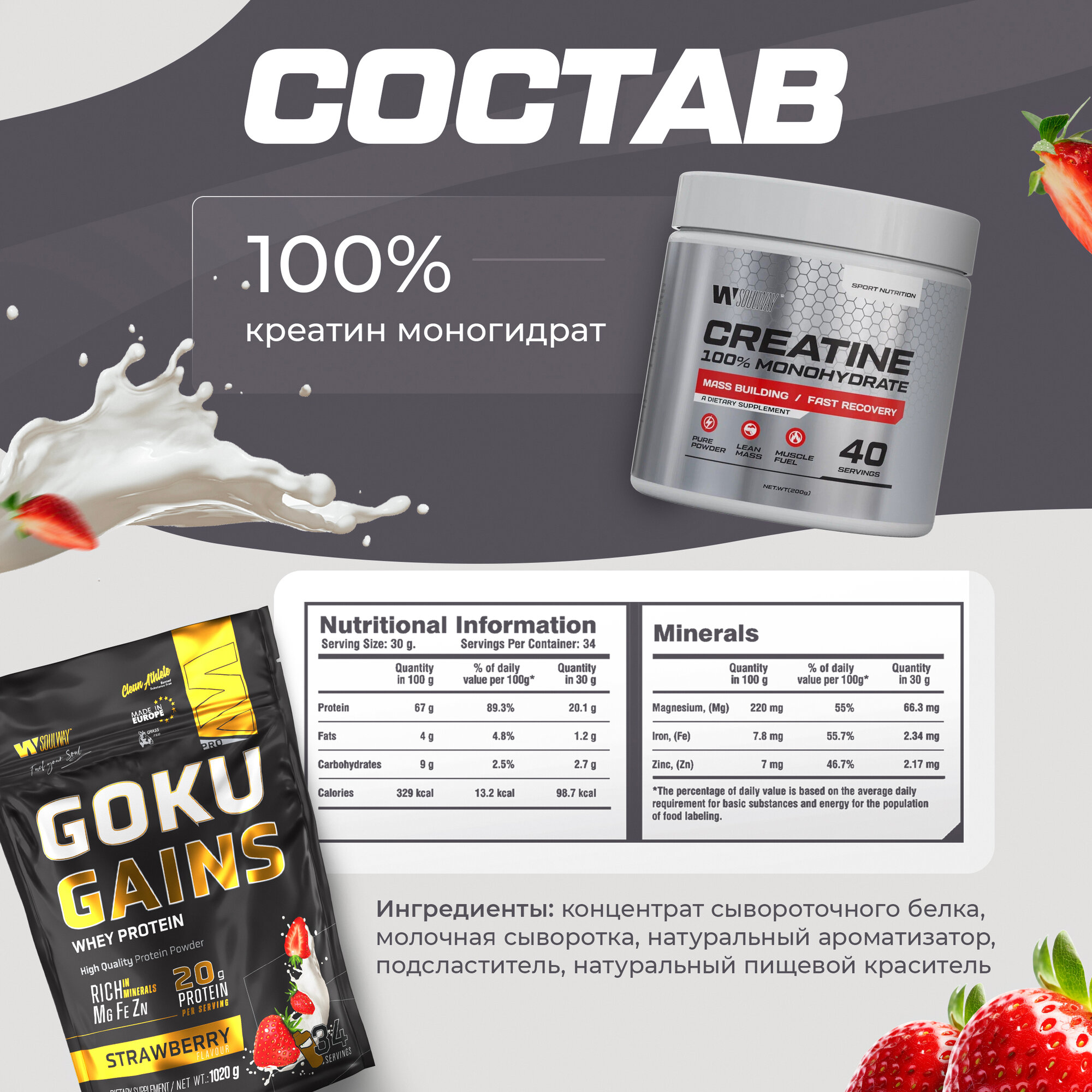 Набор Гоку Клубника + Креатин 40 + Цинк Цитрат 90