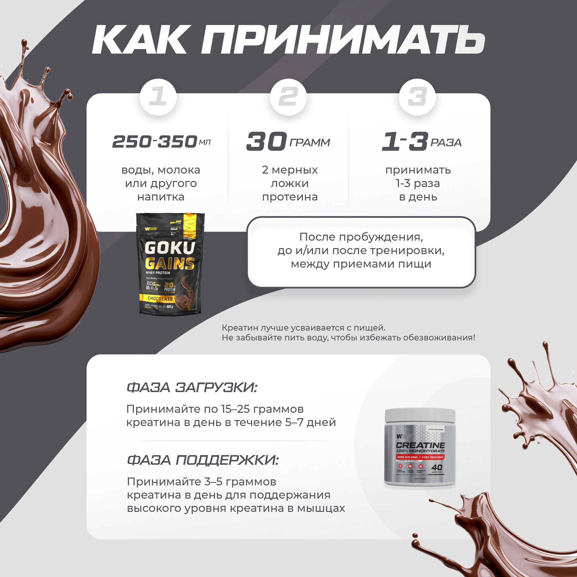 | Плюсы: | вкусный и приятные протеин шоколад и креатин -пудра, даже чутка сладит |