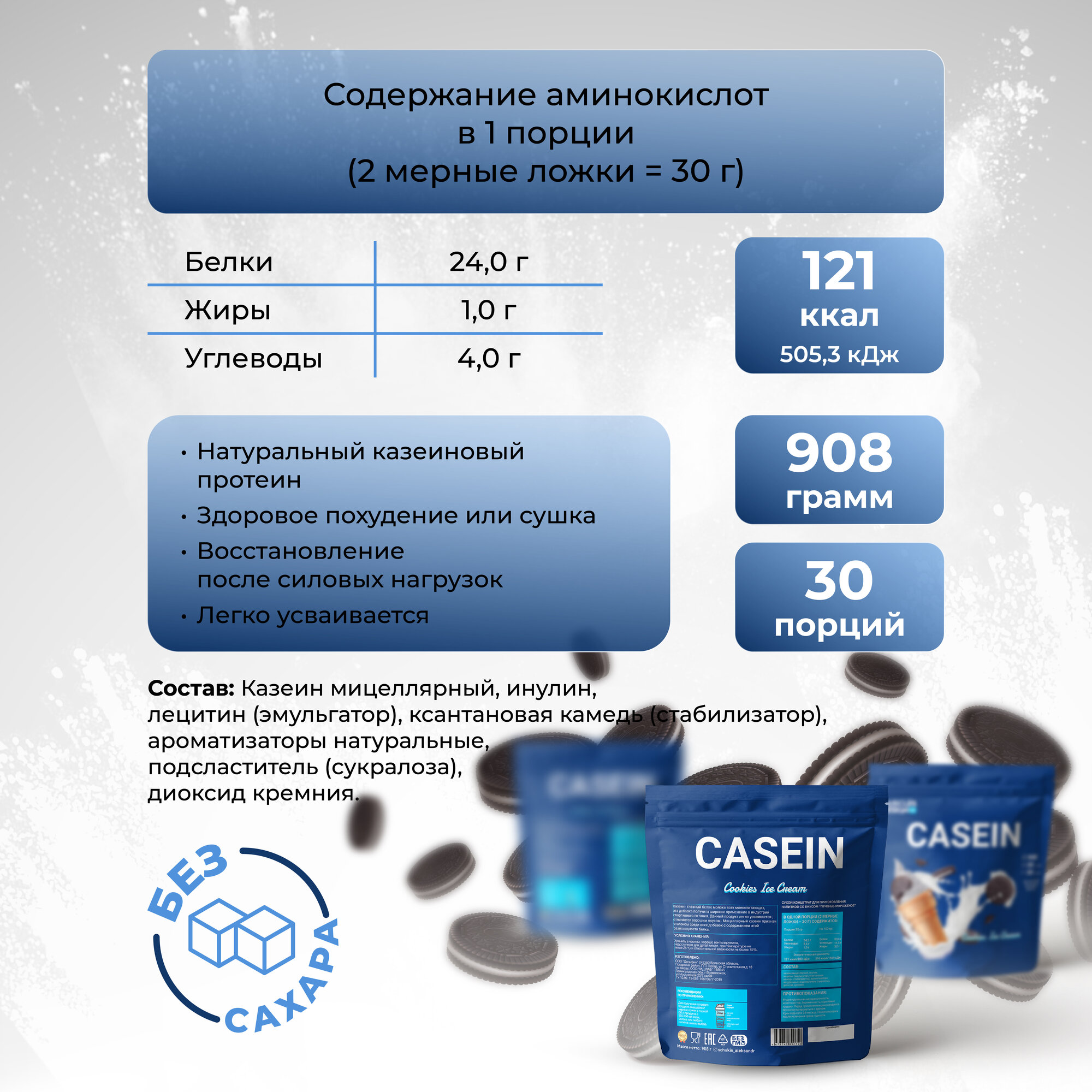 казеин со вкусом шоколад без сахара со вкусом печенье-мороженое