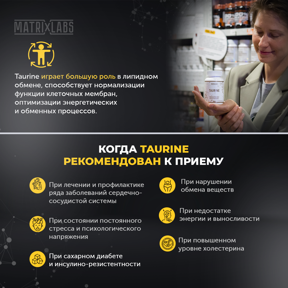 Таурин 1000 мг 90 капсул Matrix Labs для энергии зрения и выносливости интересное: