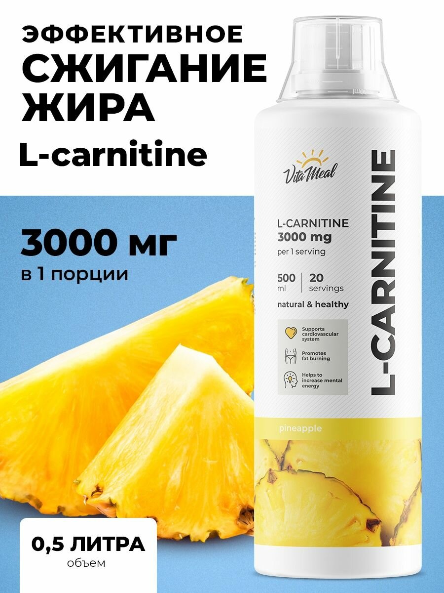 Купить Л-карнитин жидкий VitaMeal L-Carnitine 3000 mg / Жиросжигатель, 500 мл, Ананас