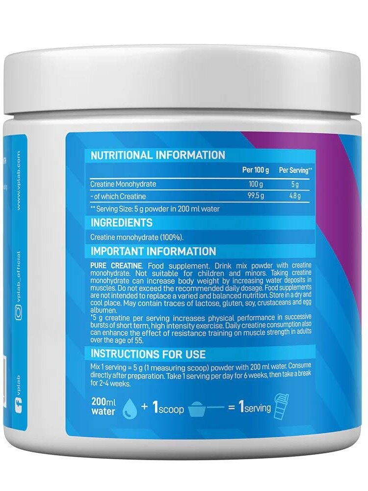 Купить VPLAB Pure Моногидрат креатина для выносливости и увеличения мышечной массы 300 г