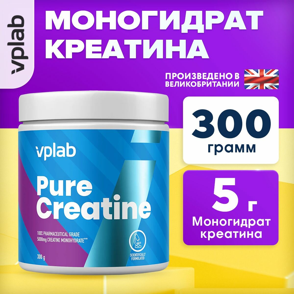 VPLAB Pure Моногидрат креатина для выносливости и увеличения мышечной массы 300 г интересное: