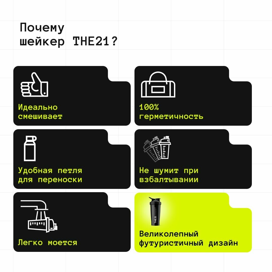 THE 21 Шейкер для спортивного питания, Цвет Черный (Black), 600 мл