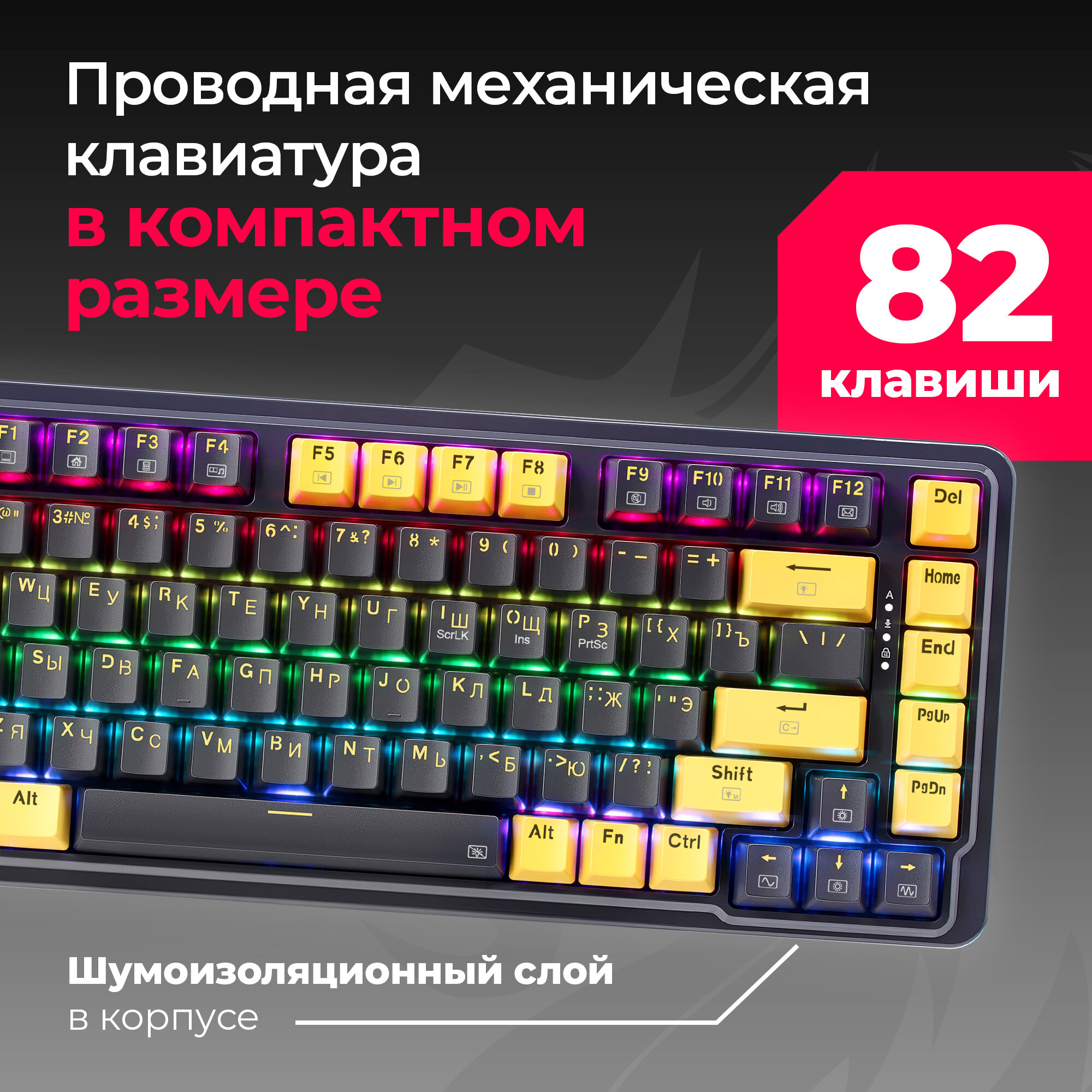 Игровая клавиатура механическая Redragon Fizz Радужная тихая, черно-красная компактная (60%)