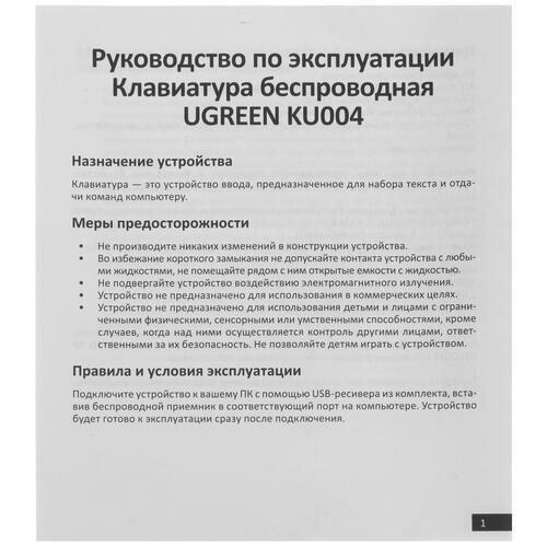 Клавиатура беспроводная UGREEN KU004 15219_ черная интересное: