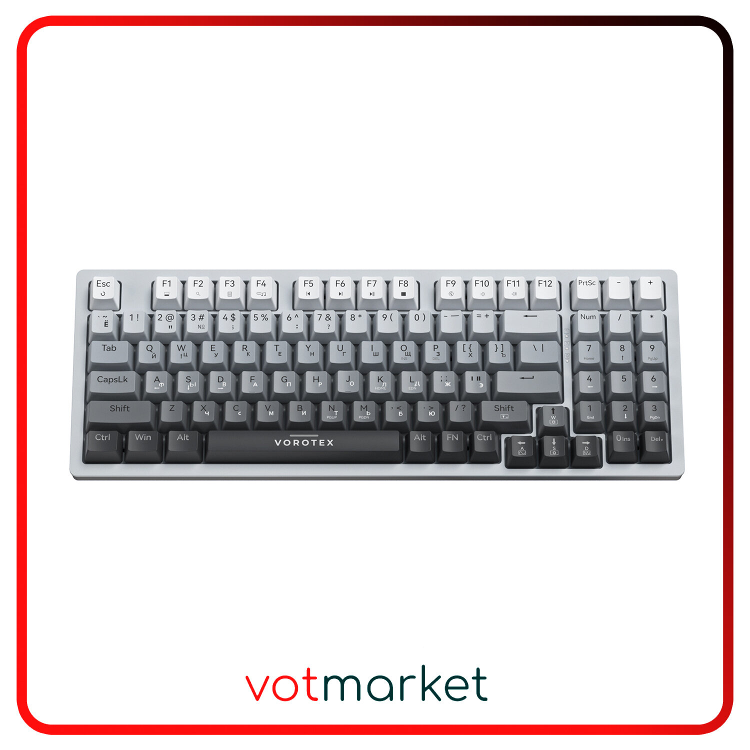 Градиентная механическая клавиатура VOROTEX K940 Outemu Red Switch, русская раскладка (серый градиент)