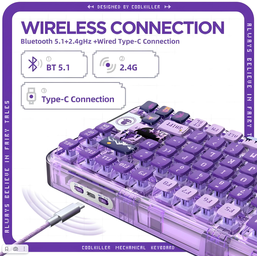 СохранитьYUNZII x CoolKiller CK75 Игровая клавиатура беспроводная. Фиолетовая. интересное: