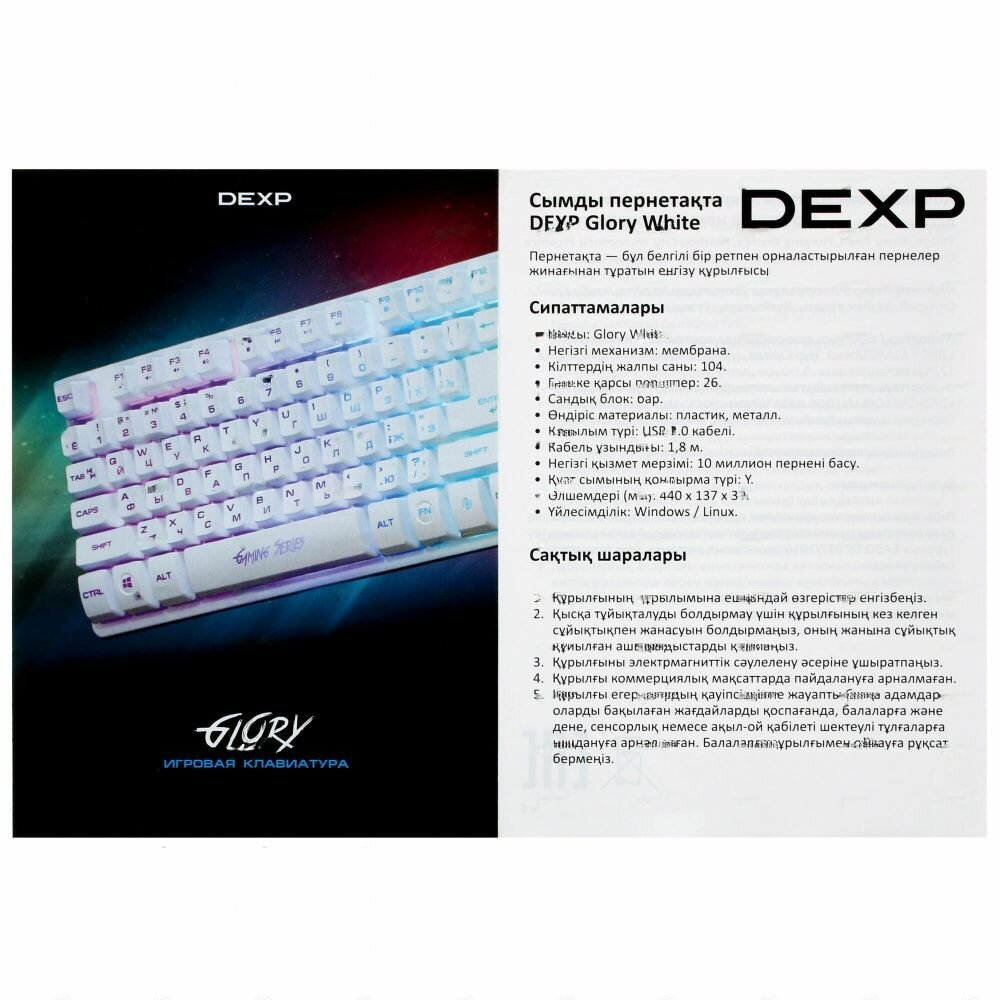 Клавиатура проводная DEXP Glory, мембранная, клавиш - 104, USB, белая